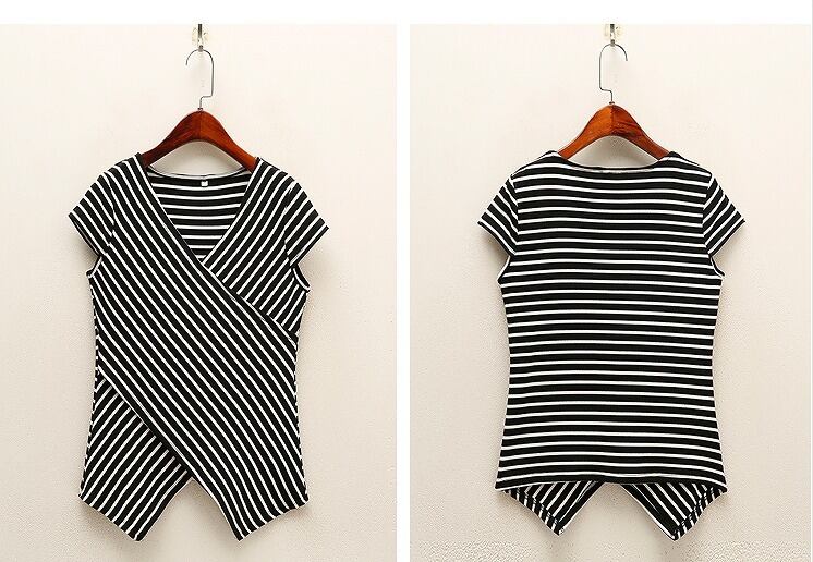 大きいサイズ レディース ストライプ柄クロスデザイントップス&七分丈ワイドパンツ 2点セット 上下セット セットアップ 半袖 春夏