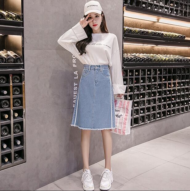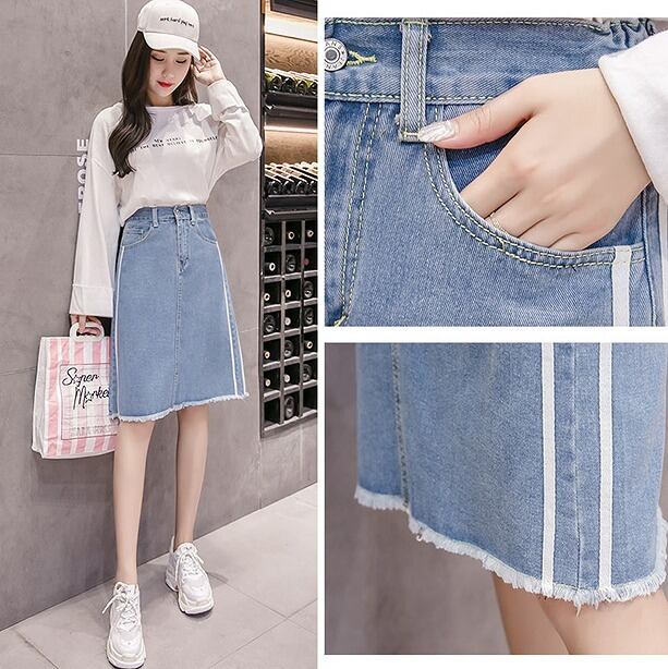 S~大きいサイズ レディース カットオフデニムサイドラインスカート 春夏 【S8852907】