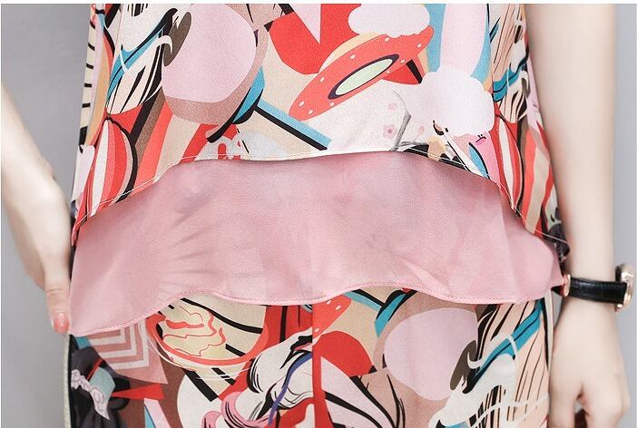 大きいサイズレディース ノースリーブトップス&パンツ セットアップ 上下セット 半袖 五分袖 春夏 キャミソール【S8885097】