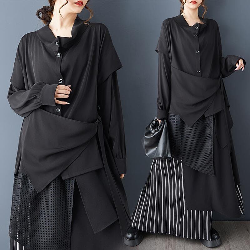 #大きいサイズ #ゆったり #セットアップ #モード系 #シャツ #スカート #黒 #ブラック #新品 #秋服