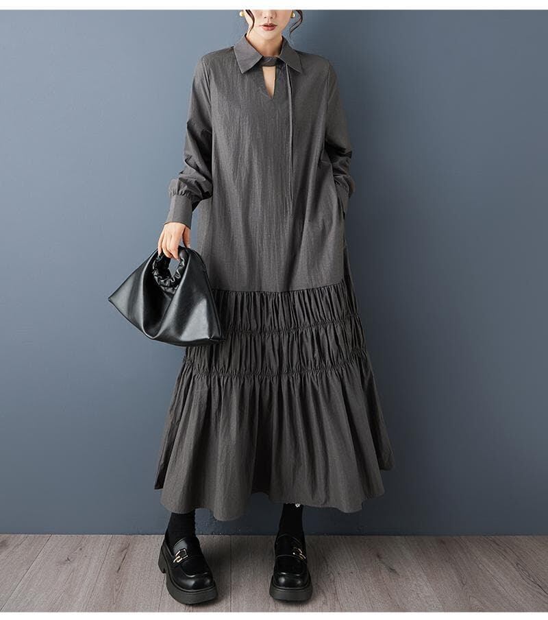 新品 大きいサイズ ゆったり ティアード ロングワンピース グレー ギャザー