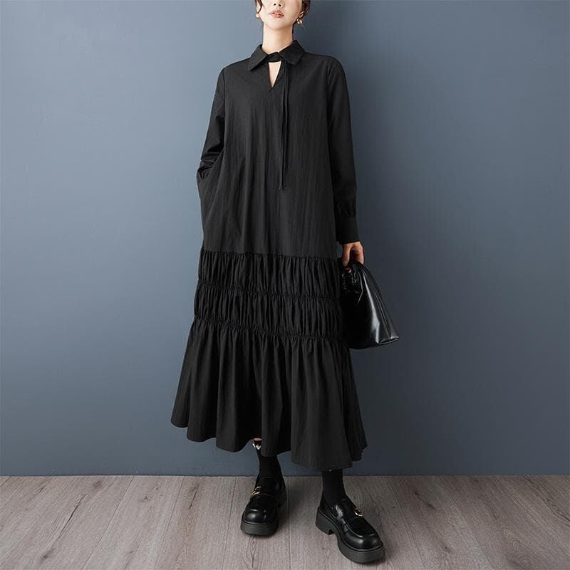 #大きいサイズ #ゆったり #ワンピース #ティアード #ロングワンピース #モード系 #黒 #グレー #新品 #秋服