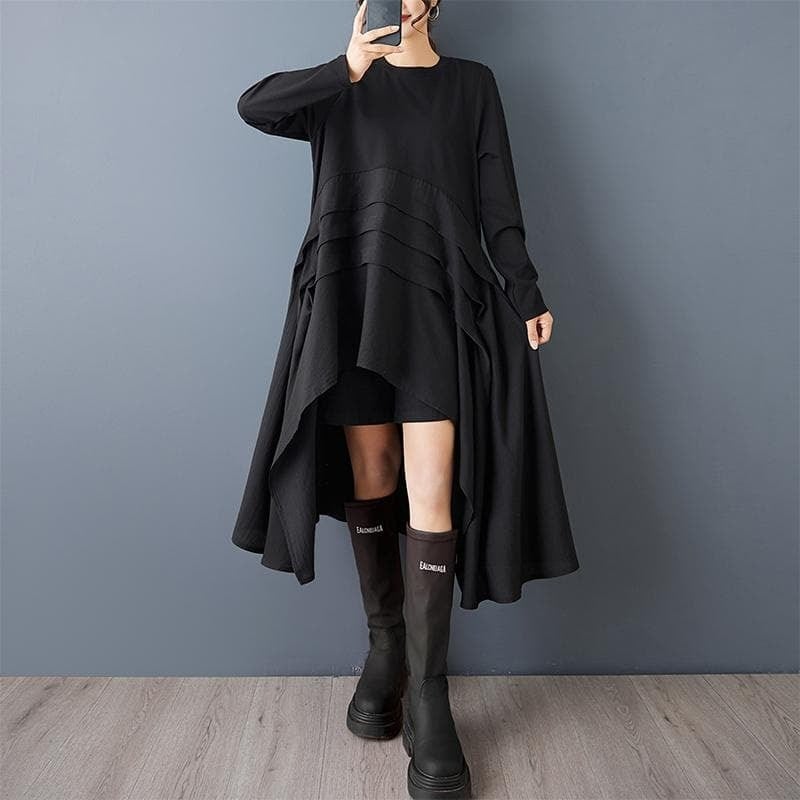 #大きいサイズ #ゆったり #ワンピース #フリル #アシメ #アシンメトリー #黒 #ブラック #新品 #春服 #秋服