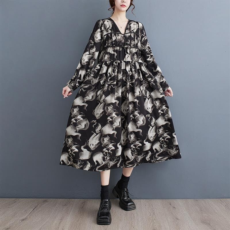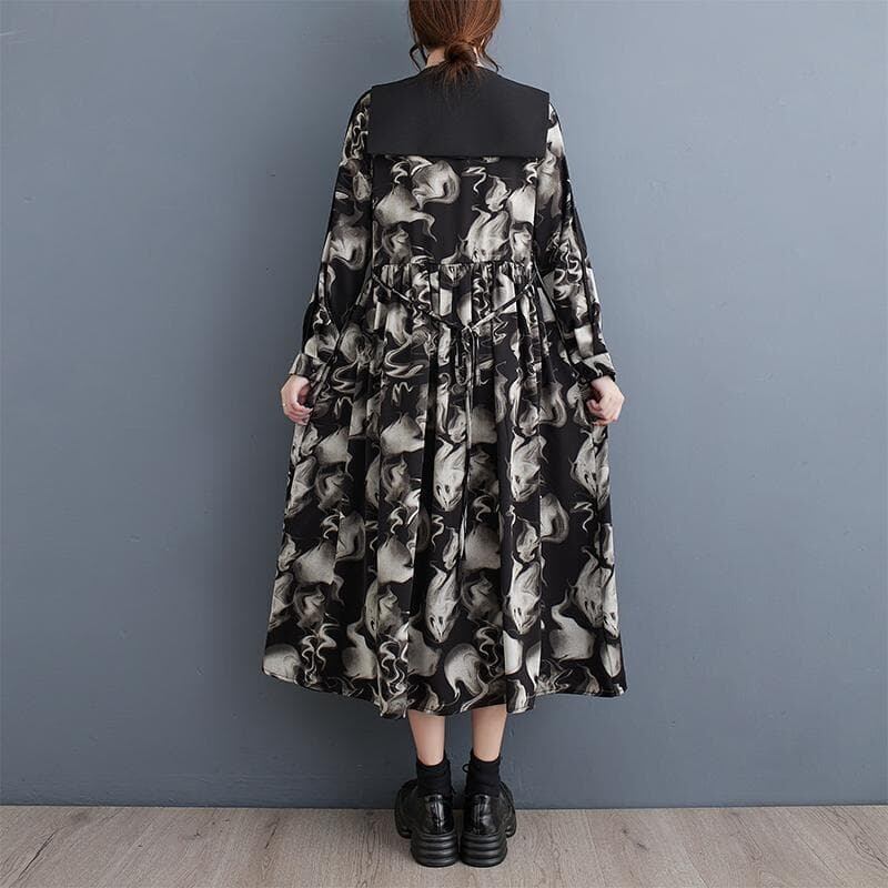 新品 大きいサイズ ゆったり 花柄 レトロ ワンピース ショール 黒 春 秋冬