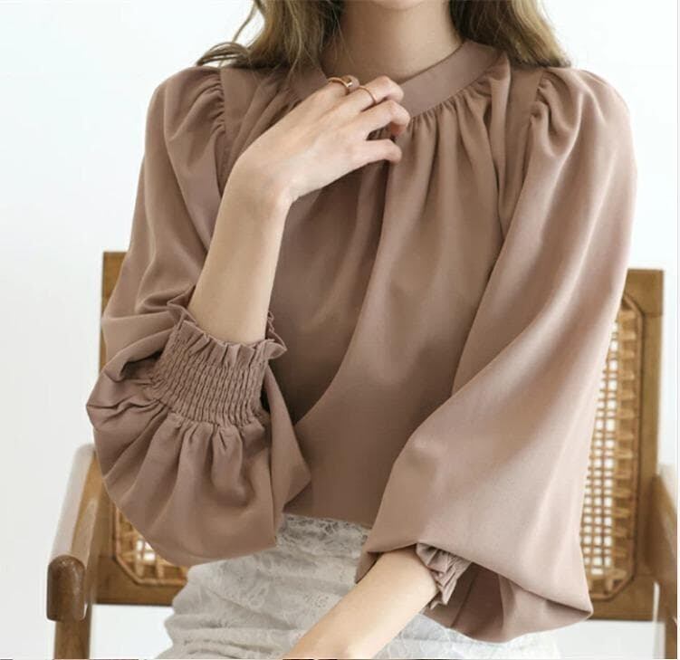 新品 韓国風 クルーネック パフスリーブ シフォンブラウス トップス 長袖
