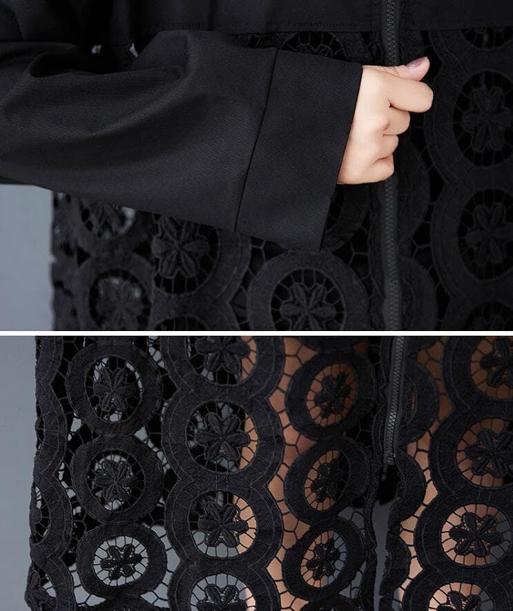 #新品 #大きいサイズ #コート #フード #ジップアップ #レース #透かし彫り #黒 #春服 #秋服
