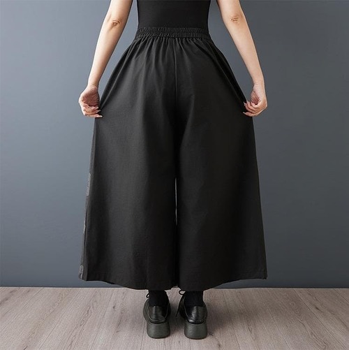 新品 春夏 レトロ 個性派 アシンメトリー ワイドパンツ 黒 ゆったり