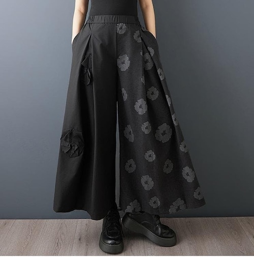 #新品 #ワイドパンツ #クロップドパンツ #レトロファッション #モード系 #個性的ファッション #花柄パンツ #アシンメトリー #体型カバー #痩せ見え #大人カジュアル #韓国ファッション