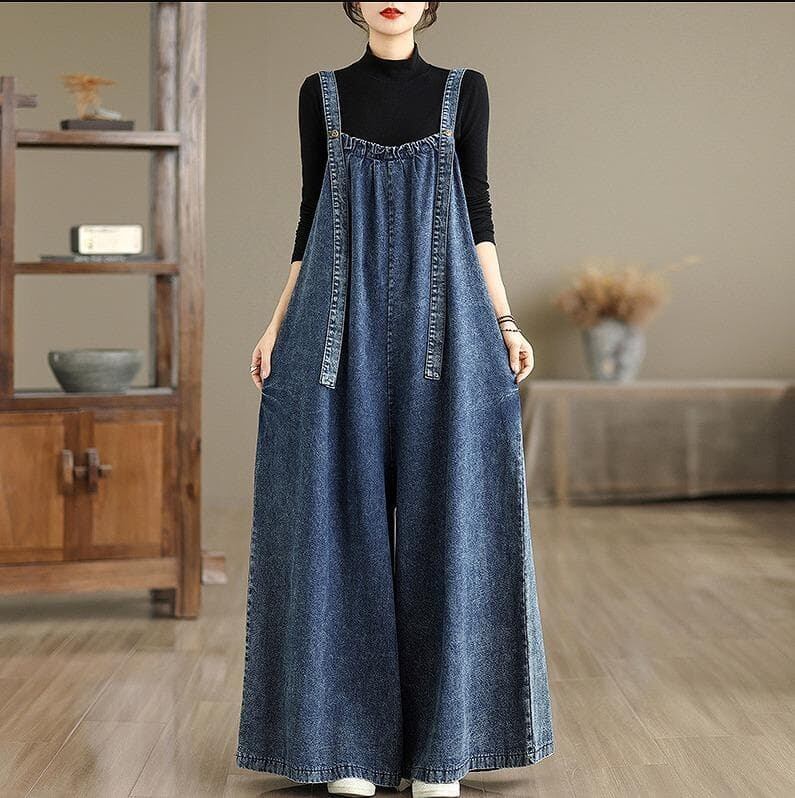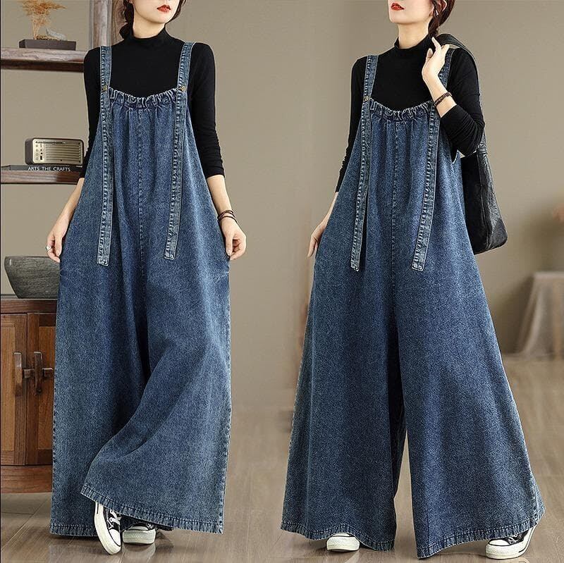 新品 レトロ デニム オーバーオール ゆったり サロペット パンツ