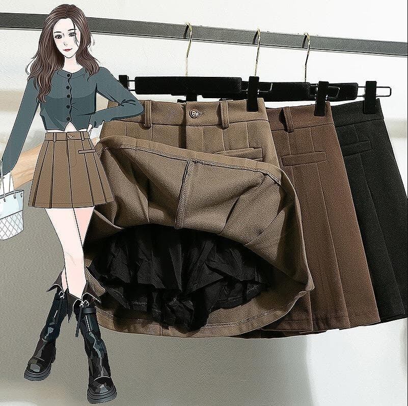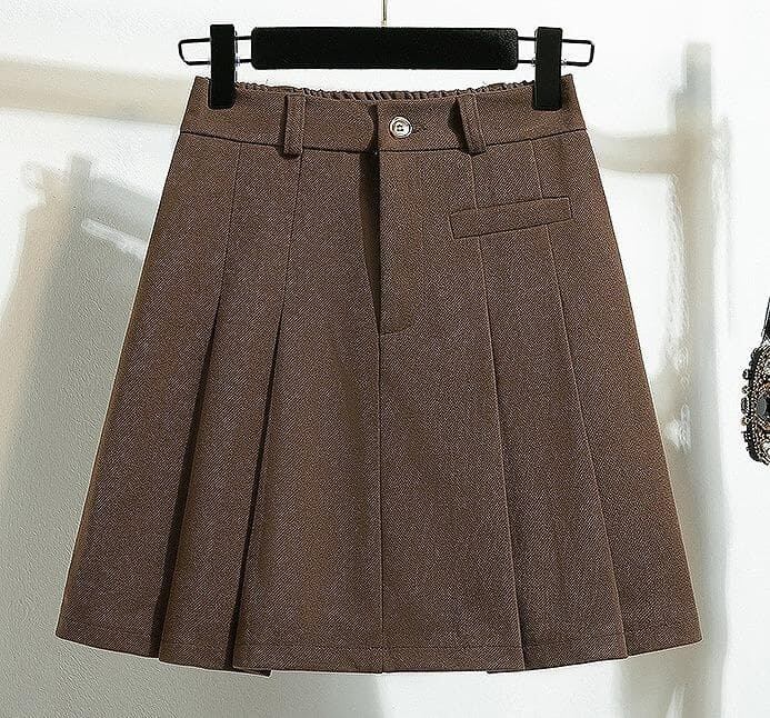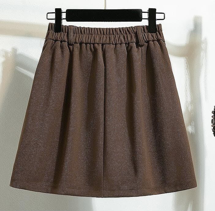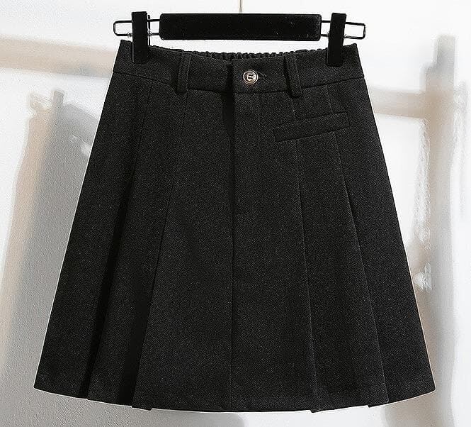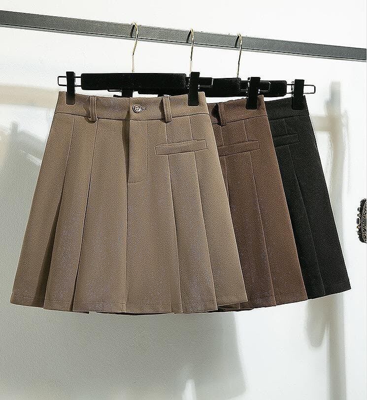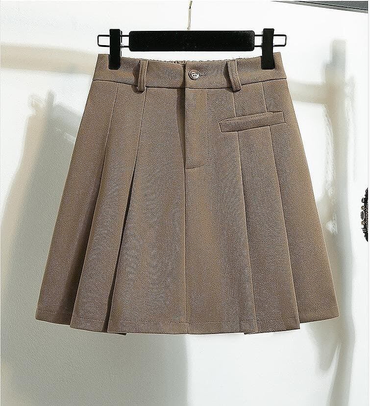 新品 秋冬 韓国風 エレガント ウール調 プリーツ Aラインミニ スカート