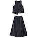 ヴィンテージ感漂うモードなデザインが魅力的な、ベストとロングスカートのツーピースセットです。