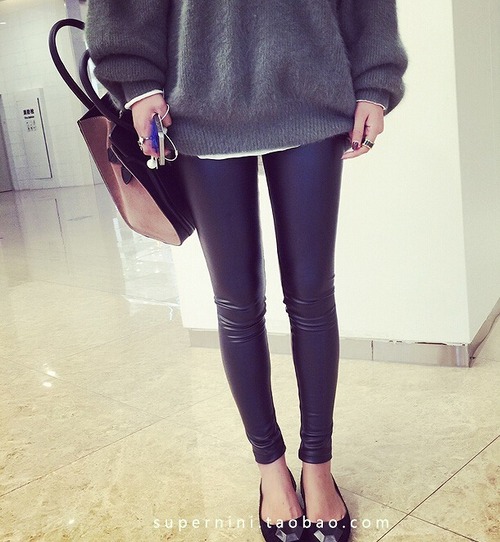大きいサイズ レディース レザー調レギンスパンツ タイツ レギパン 秋冬 長袖