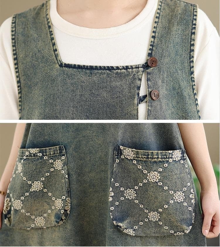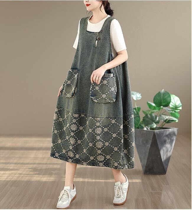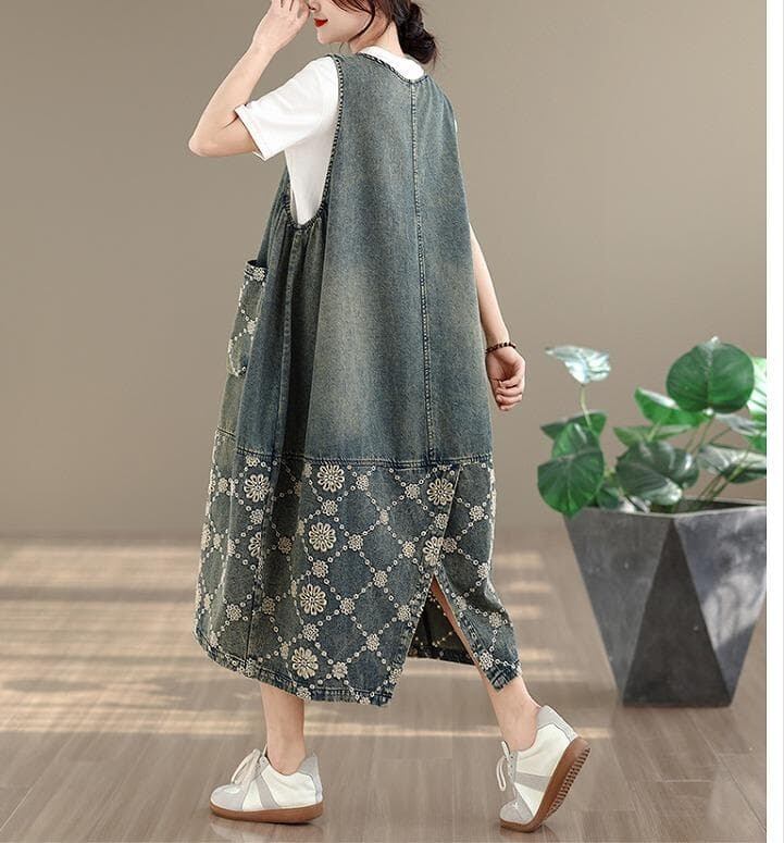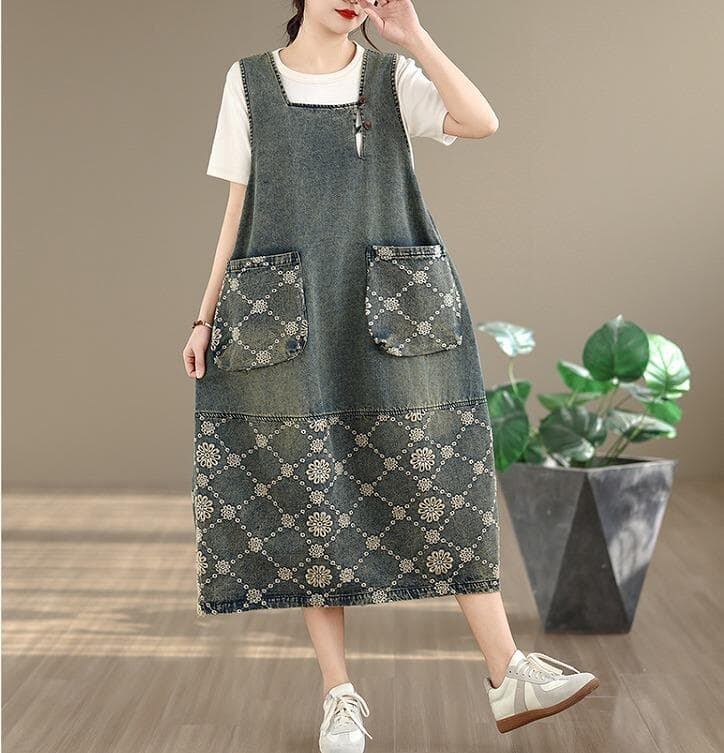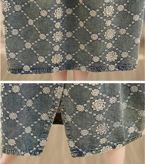 ヴィンテージな風合いとジャガード柄がおしゃれな大人カジュアルデニムワンピース