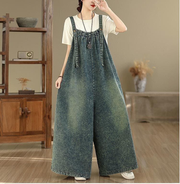 【新品】大きいサイズサロペット オーバーオール ゆったり ラージ体型カバー着痩せ細見え