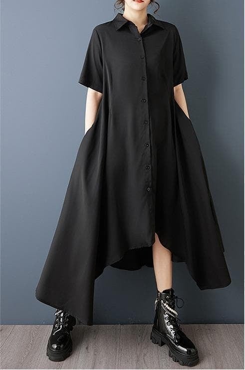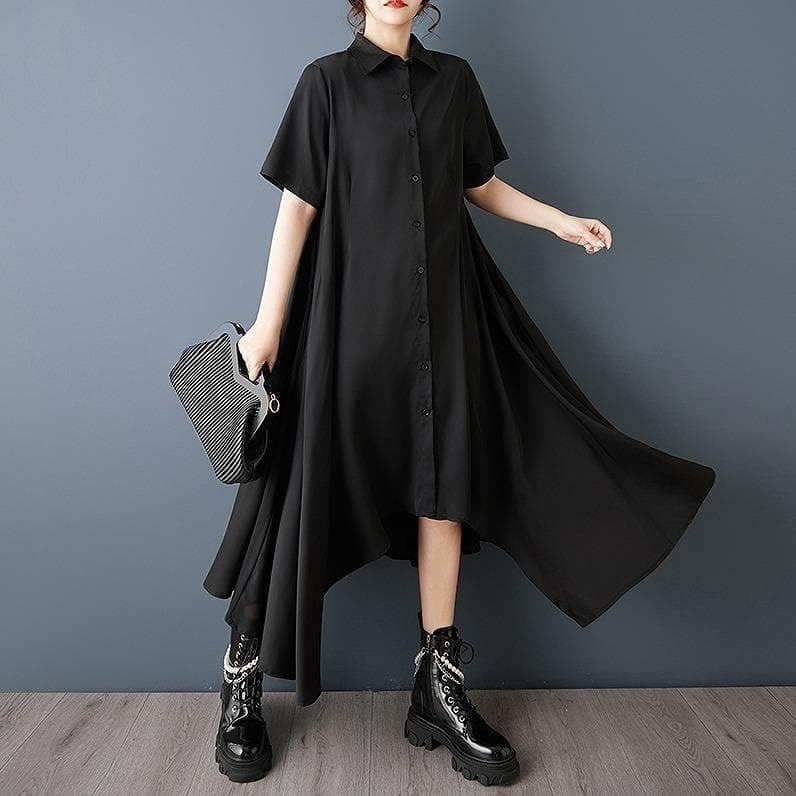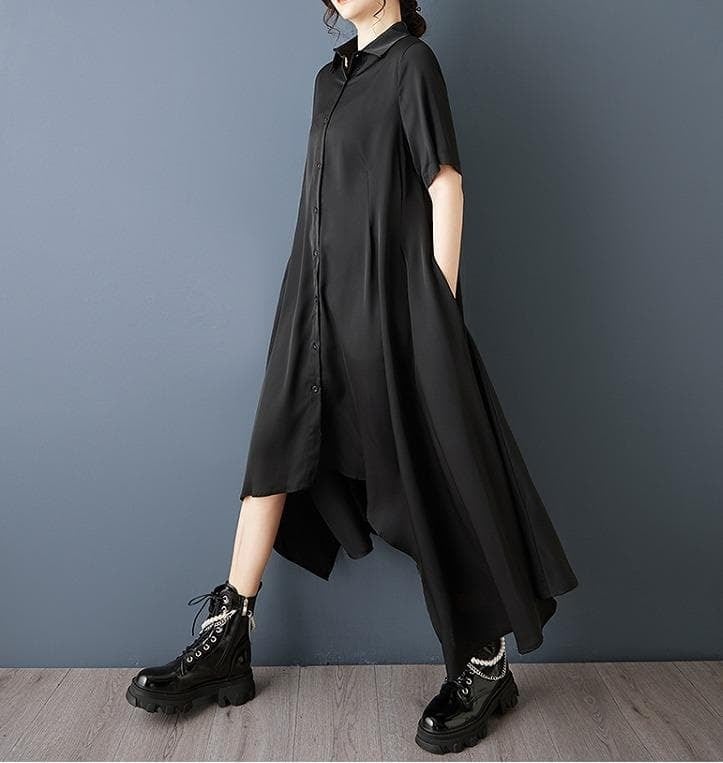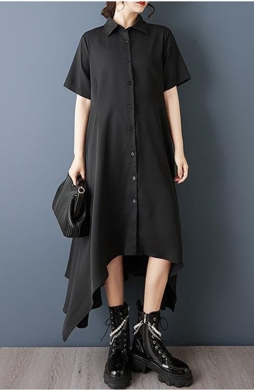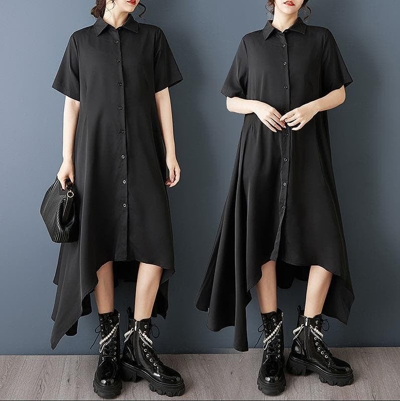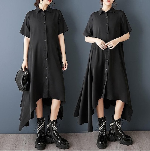 【新品】大きいサイズ春夏半袖アシメ ワンピース 黒 ゆったり