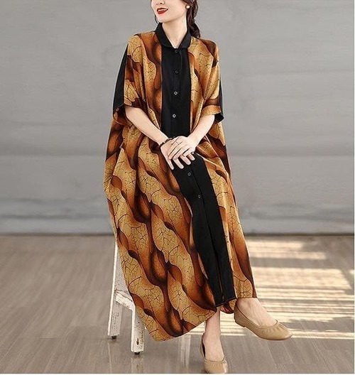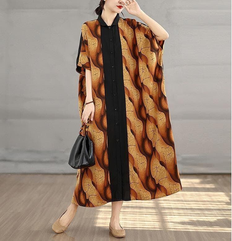 【新品】大きいサイズ春夏半袖シャツワンピース ゆったり ラージ体型カバー着痩せ細見えおしゃれ カラーブロックプリント
