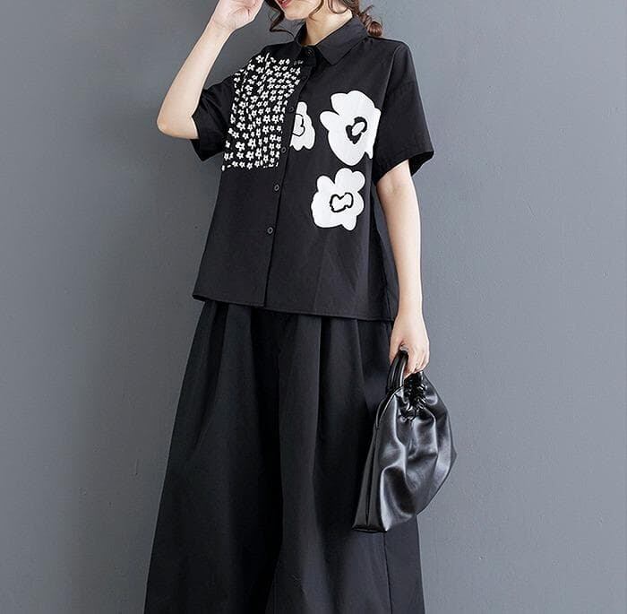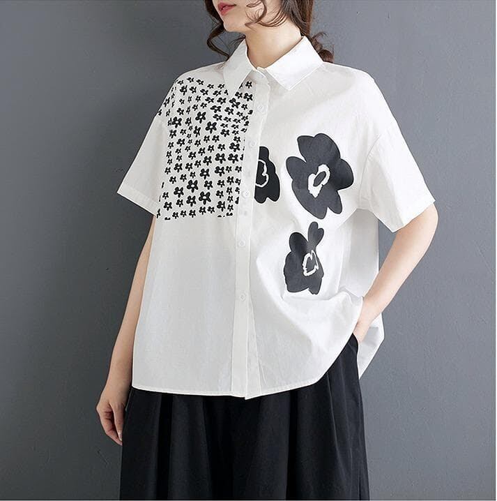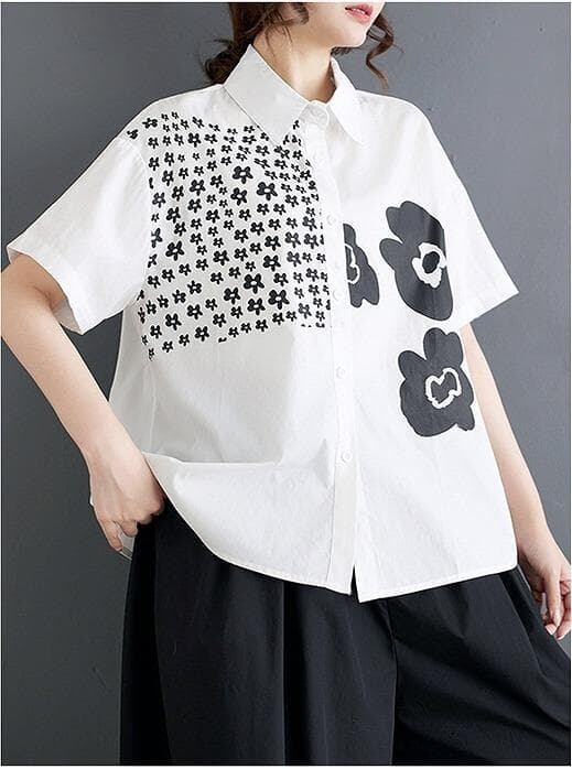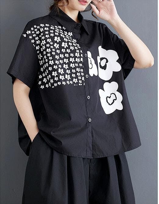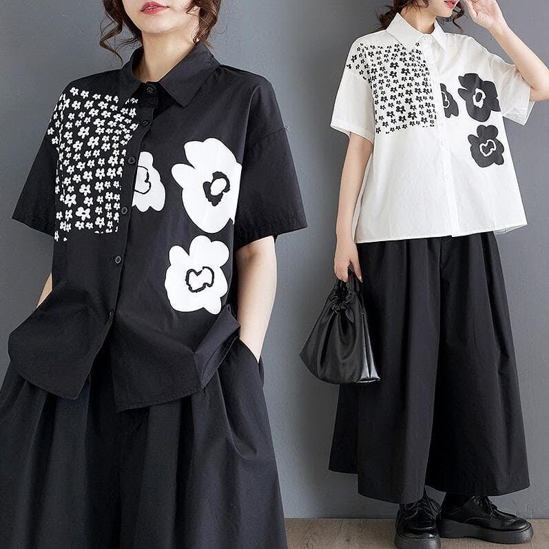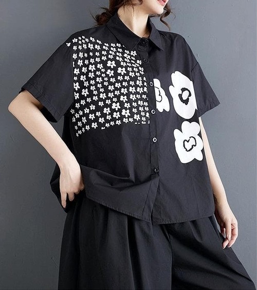 【新品】大きいサイズ春夏半袖シャツ花柄ゆったり トップス ラージ体型カバー着痩せ細見え