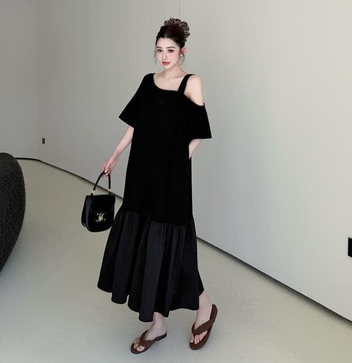 【新品】大きいサイズ 春夏 半袖 オフショル ワンピース ゆったり黒