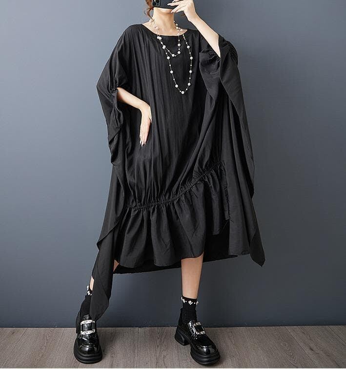 オーバーサイズ バットスリーブ アシンメトリーワンピ 無地ギャザー