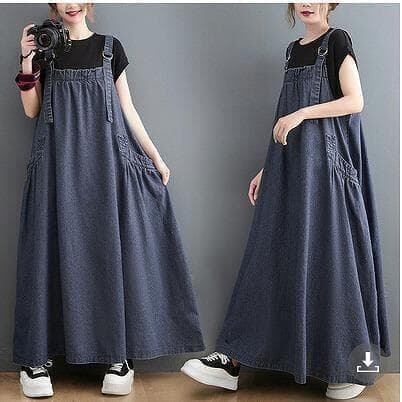 大きいサイズ 新品 デニムサロペットワンピース ロング丈 ゆったり
