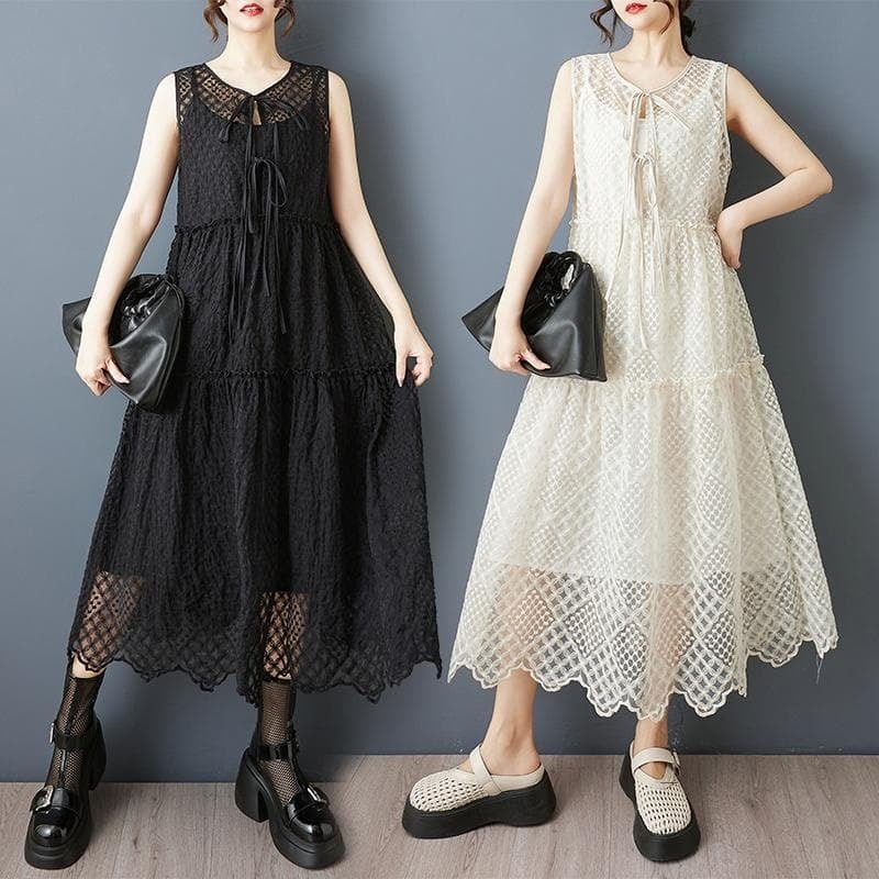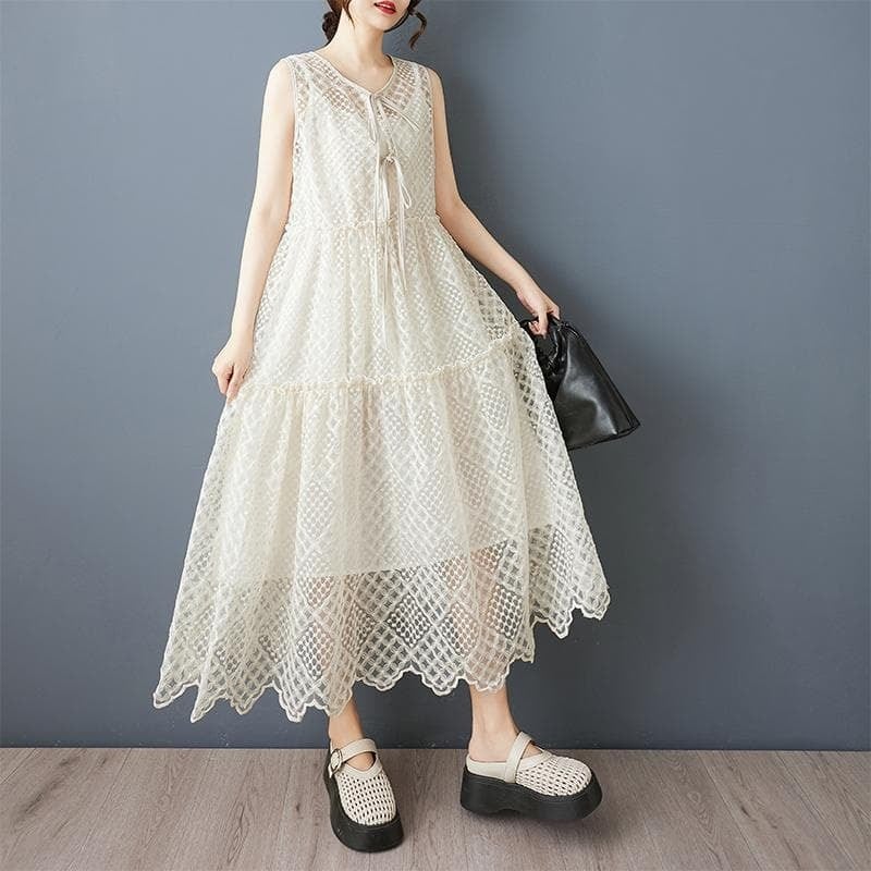 新品 大きいサイズ 春夏 ノースリーブ レースワンピース ロング 体型カバー レディース フェミニン