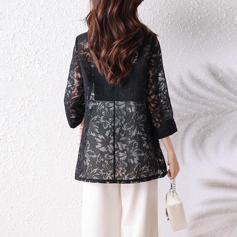 新品 大きいサイズ 春夏 七分袖 シアージャケット 黒 羽織り UV対策 ゆったり 体型カバー レディース