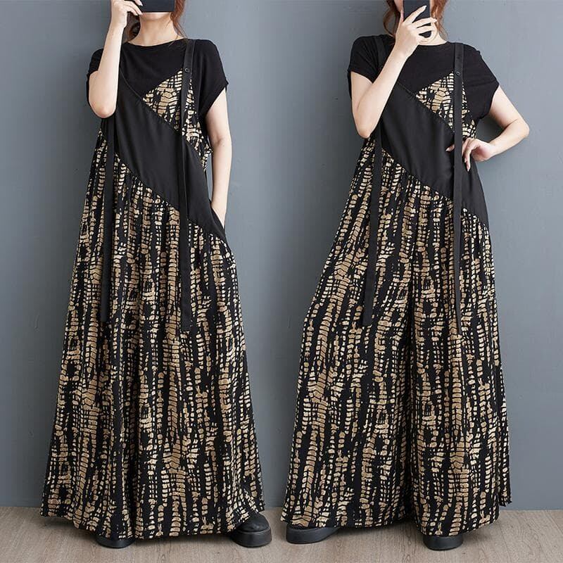 大きいサイズ 新品 春夏 ゆったり体型カバーワイドパンツサロペット