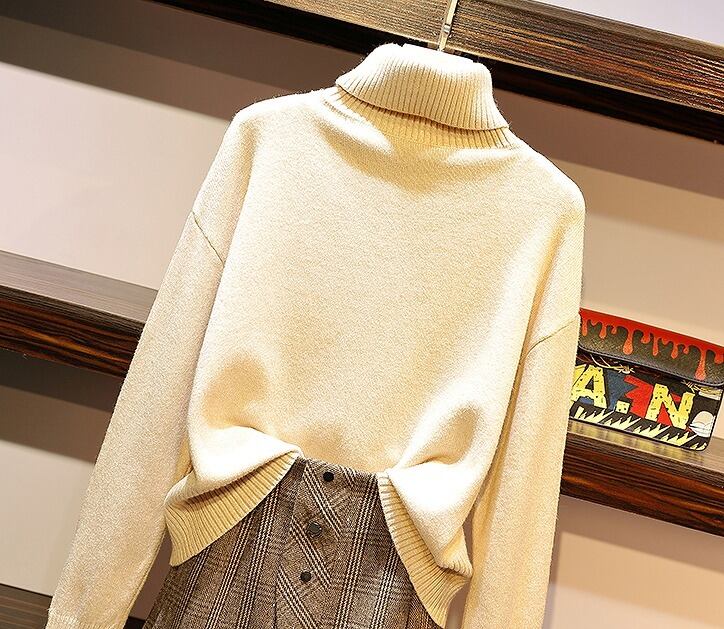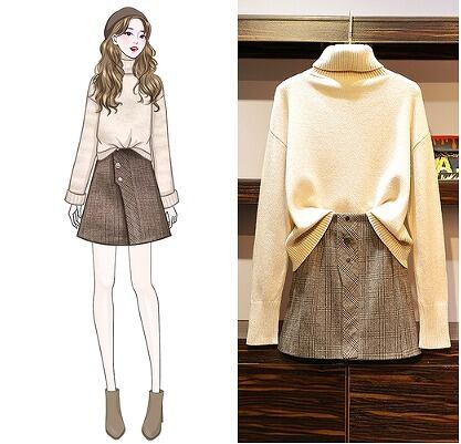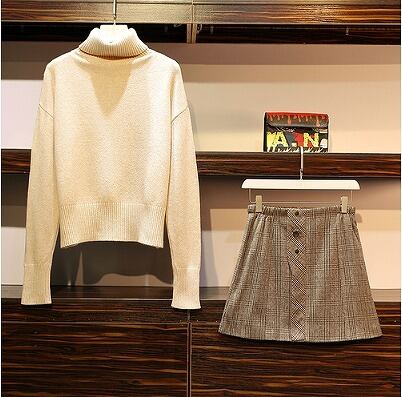 大きいサイズ レディース タートルネックトップス&ミニスカート 2点セット セットアップ 秋冬 長袖 チェック 【S8931097】