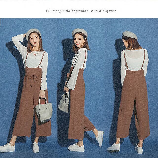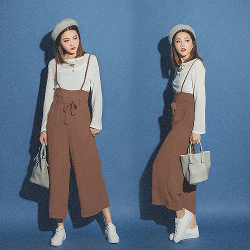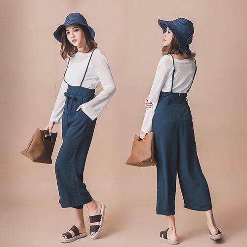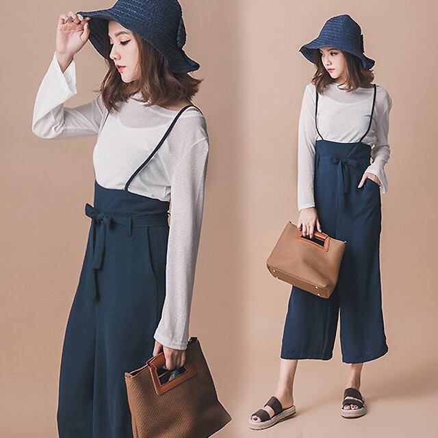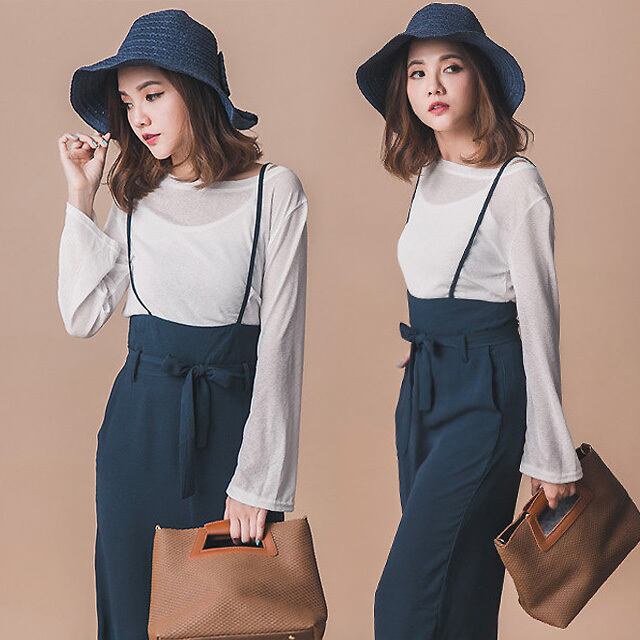 リラックス感がありながら品良くきまる肩紐付きのサロペットとシンプルなホワイトのトップスの2点セット♪