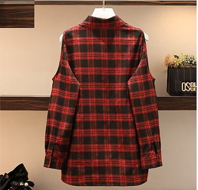 大きいサイズ レディース オープンショルダートップス&スカート セットアップ 上下セット シャツ チェック柄 長袖 春 夏 秋 2L 3L 4L 5L