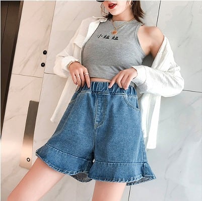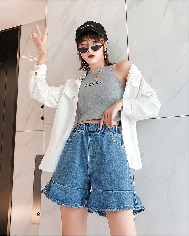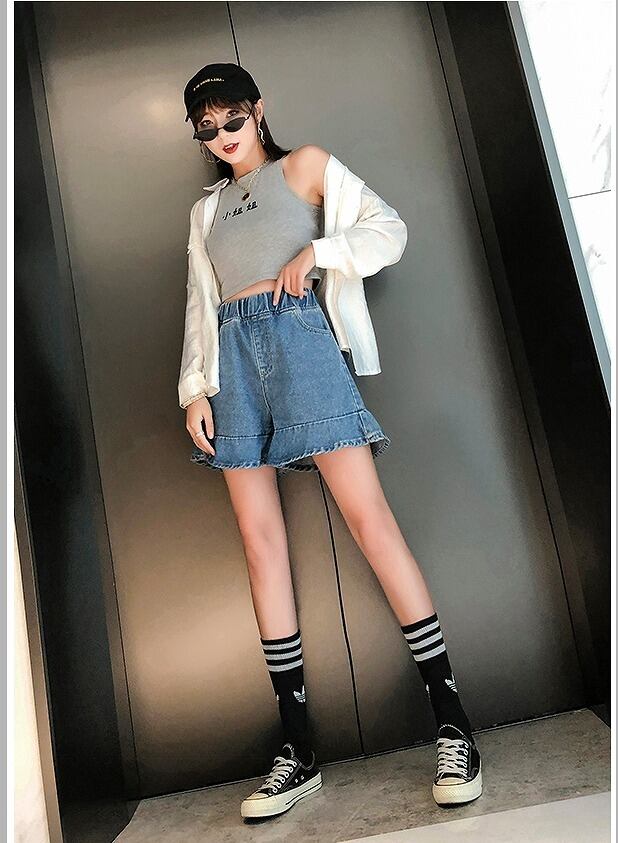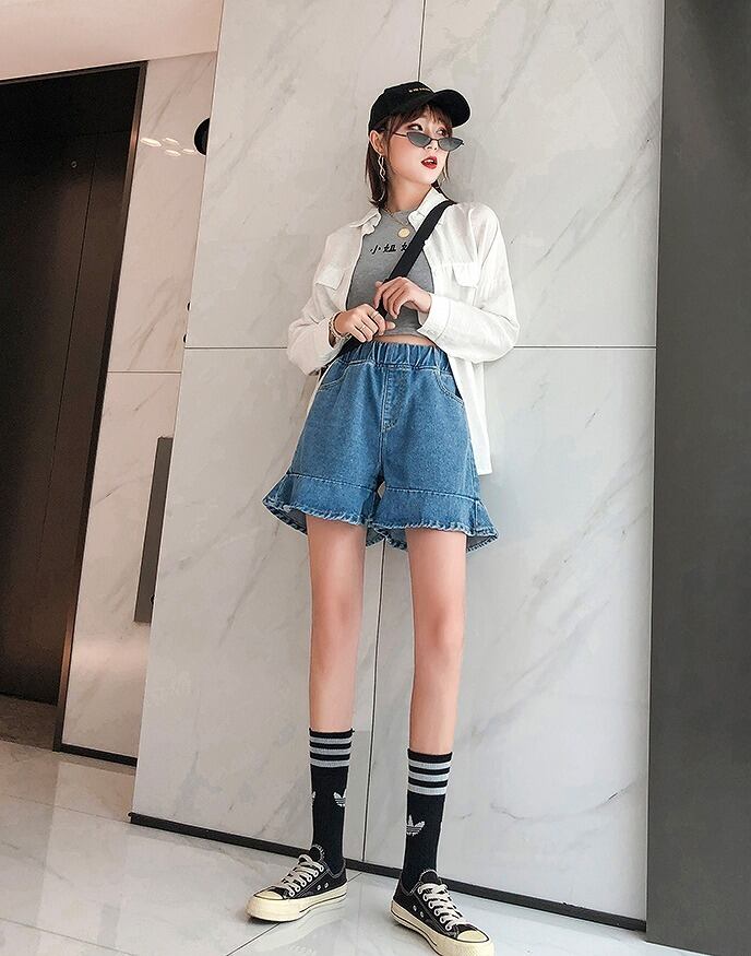 大きいサイズ レディース デニムショートパンツ ウエストゴム 春夏 ショーパン