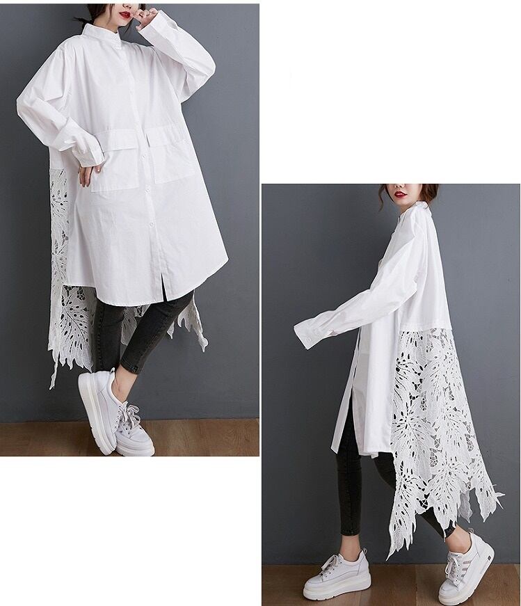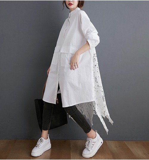 大きいサイズ レディース バックレース ロングシャツ トップス 長袖 春 秋 冬【S8011297】