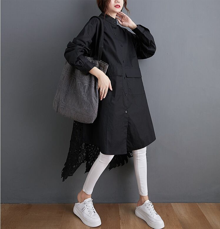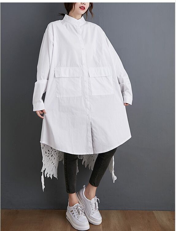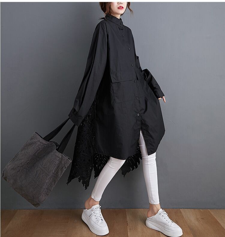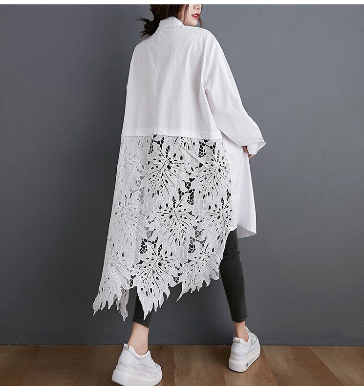 大きいサイズ レディース バックレース ロングシャツ トップス 長袖 春 秋 冬
