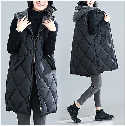 大きいサイズ レディース 春 秋 冬 長袖 ベスト アウター フード