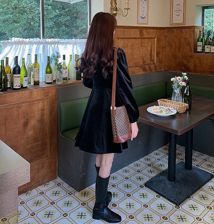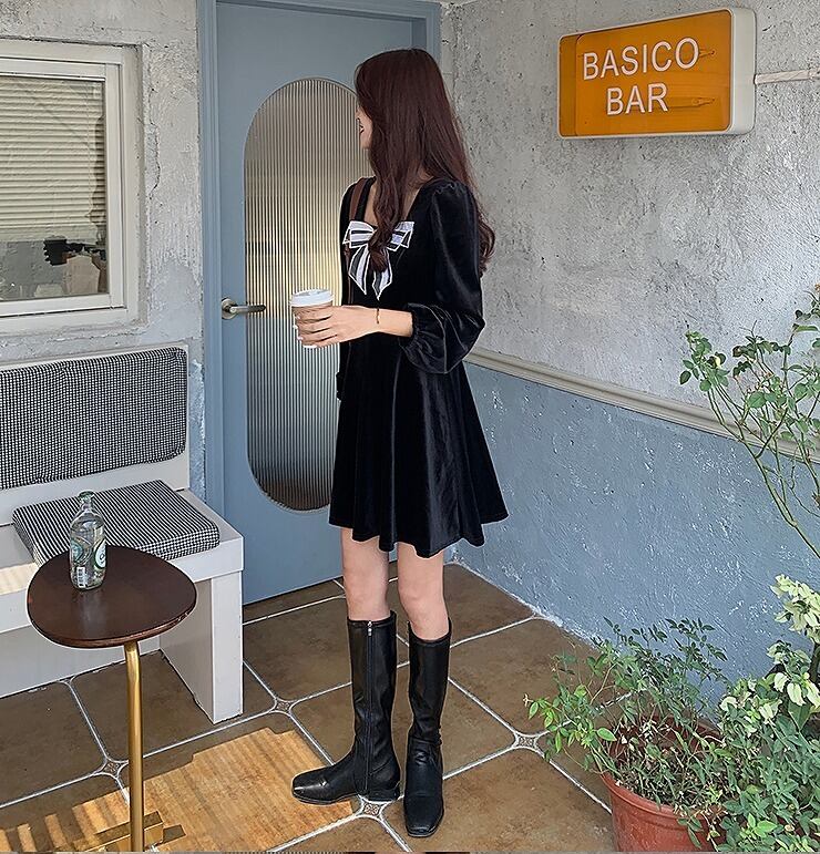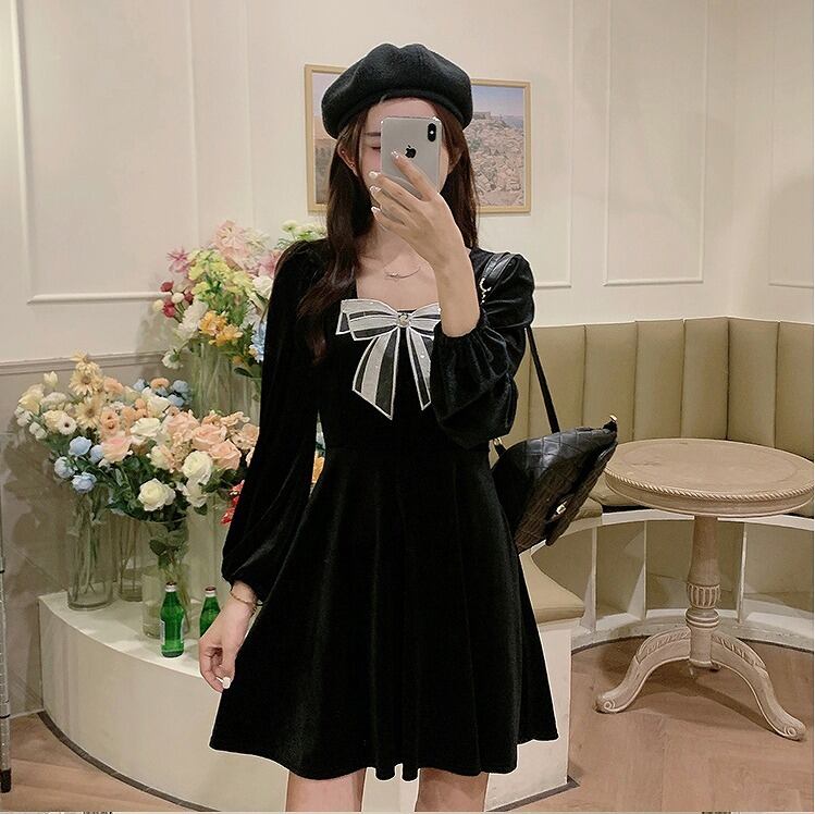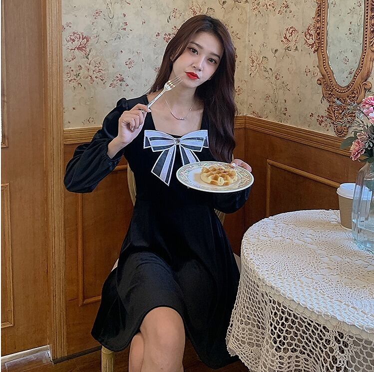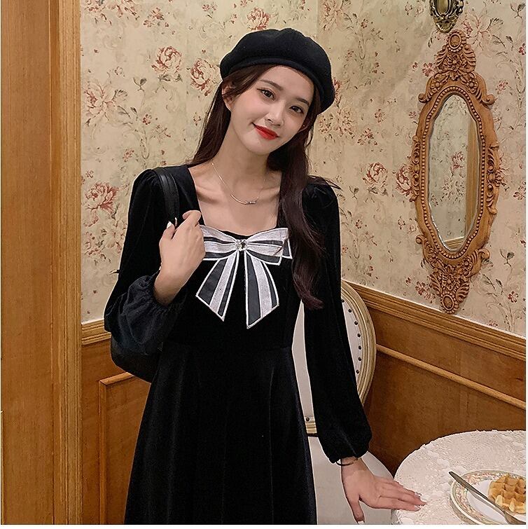 大きいサイズ レディース リボン付きワンピース スクエアネック