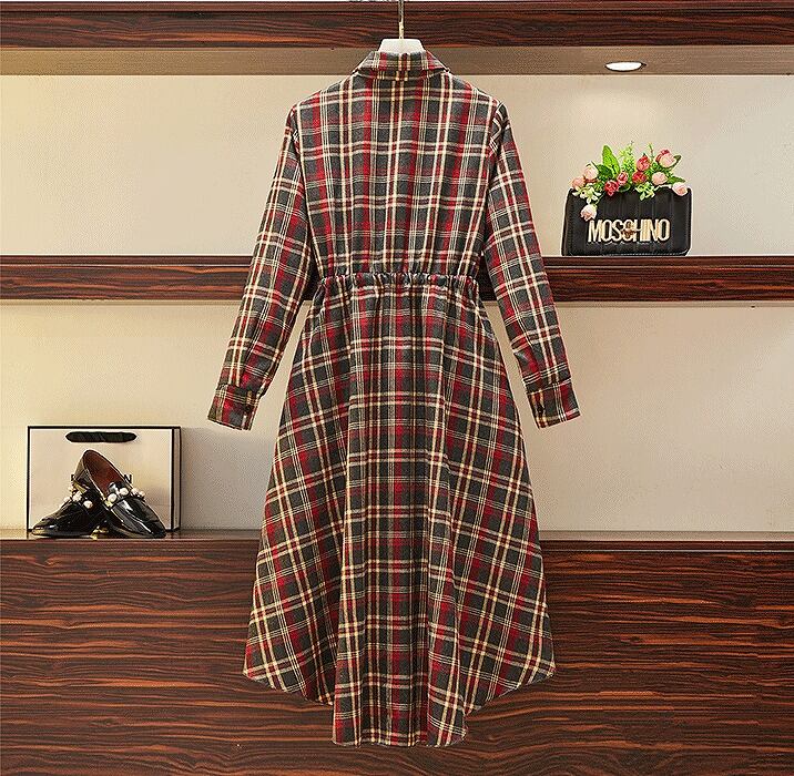 【大きいサイズ レディース】秋冬 シャツワンピース チェック柄