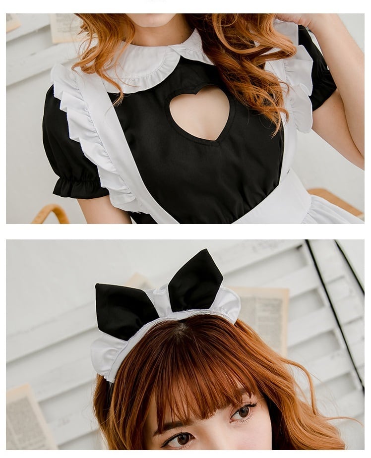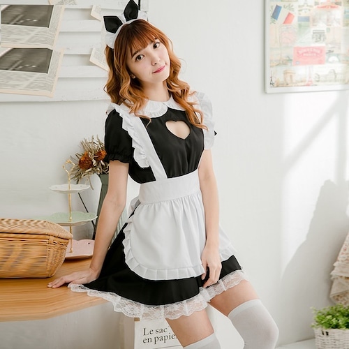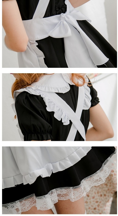 素材:100%ポリエステル 伸縮性:なし 内容:ワンピース エプロン カチューシャ