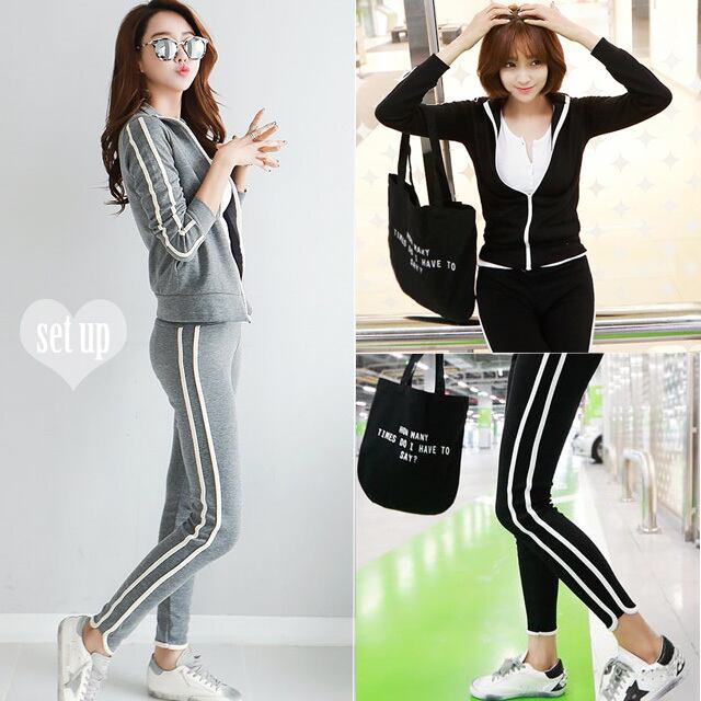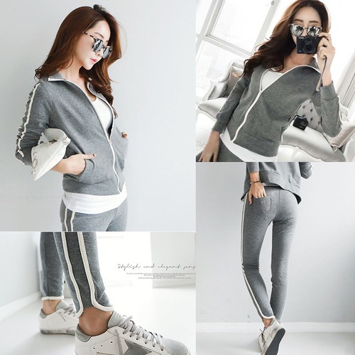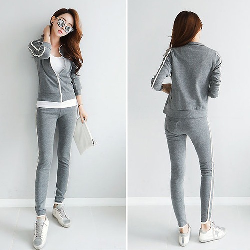フードなしタイプのジップアップパーカーとボトムスの上下のセットアップ☆