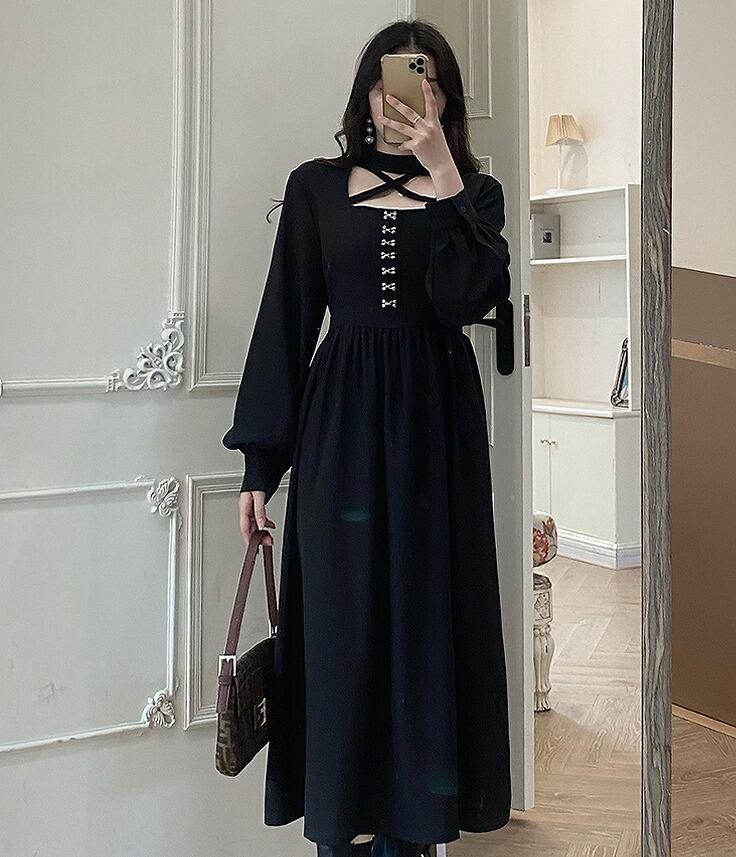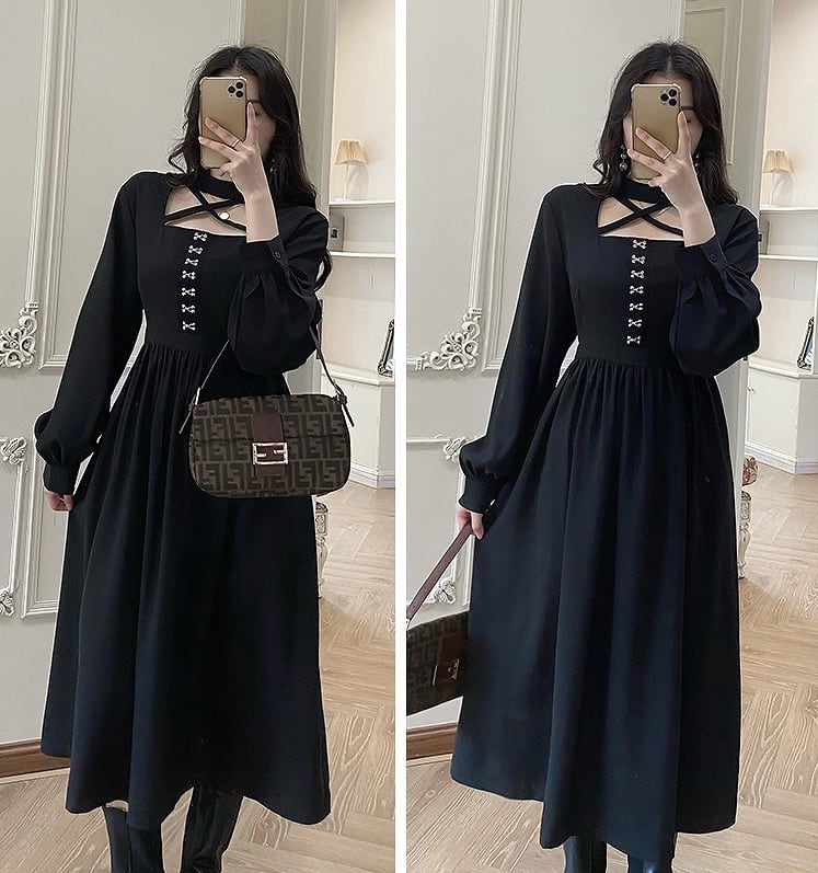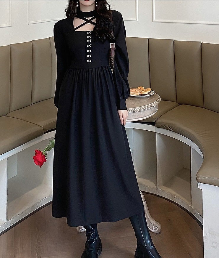大きいサイズ レディース ワンピース ブラック ゴシック ゴスロリ クロス 長袖