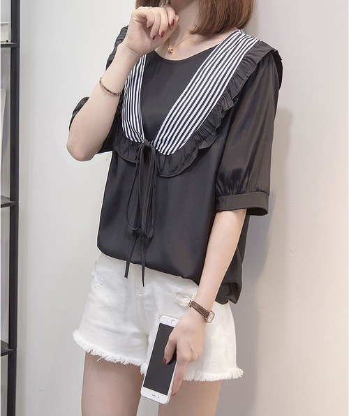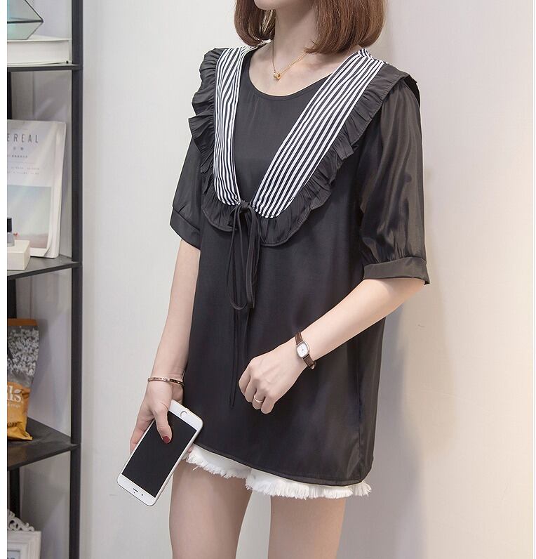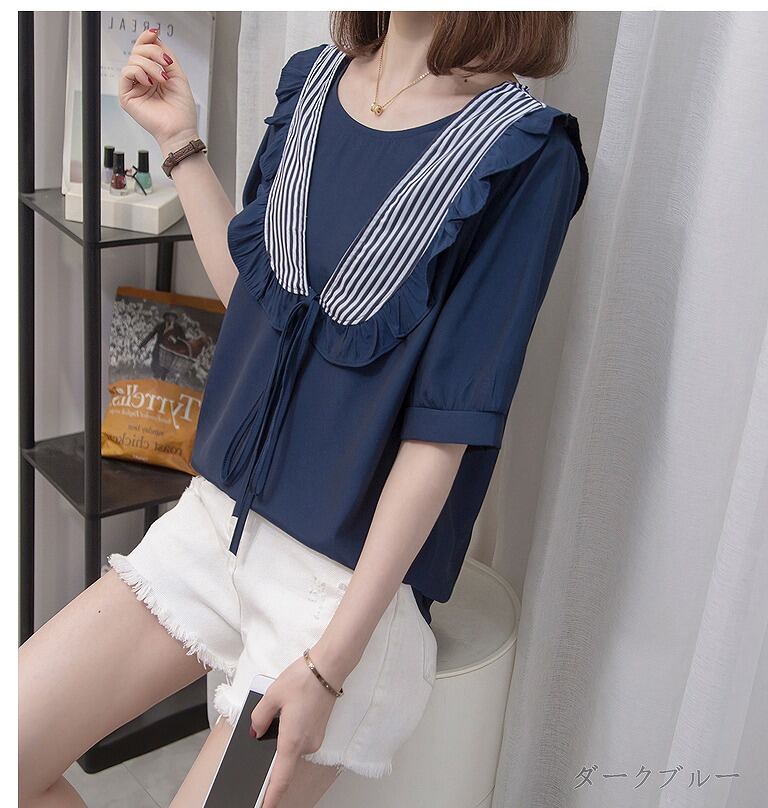 【大きいサイズL-4XL】ファッション/人気トップス♪ブラック/ダークブルー2色展開◆