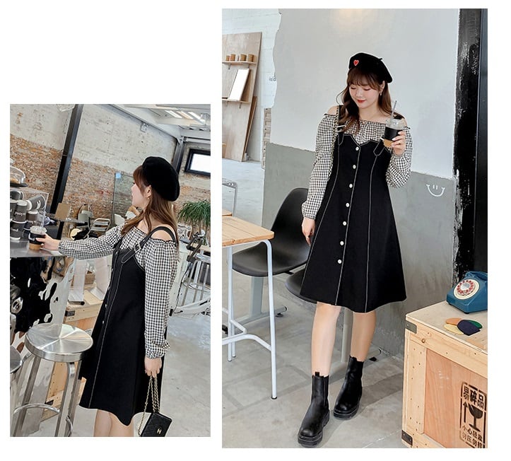 2L~5L 大きいサイズ★ぽっちゃりさん 大人可愛い ブラウスサスペンダースカート 2枚セット【YYL-YT-72817】