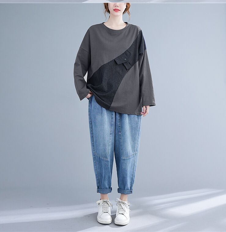 【秋冬新作】ファッション/人気Tシャツ♪ブルー/グレー2色展開◆