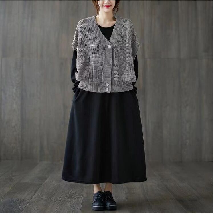 【秋冬新作】ファッション/人気/2枚セットワンピース♪ブラック/グレー2色展開◆sbioi-10315a7