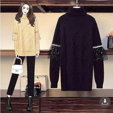 【大きいサイズM-4XL】ファッションセーター♪ベージュ/ブラック2色展開◆