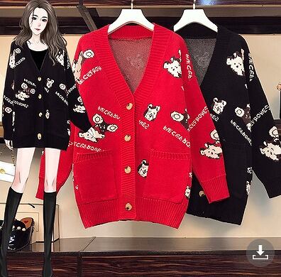 【大きいサイズL-4XL】ファッションセーター♪ブラック/アカ2色展開◆