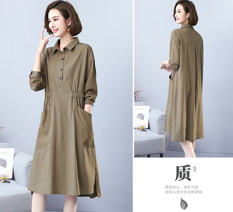 【秋冬新作】ファッションワンピース?ダークブルー/カーキ2色展開◆serfm-195897