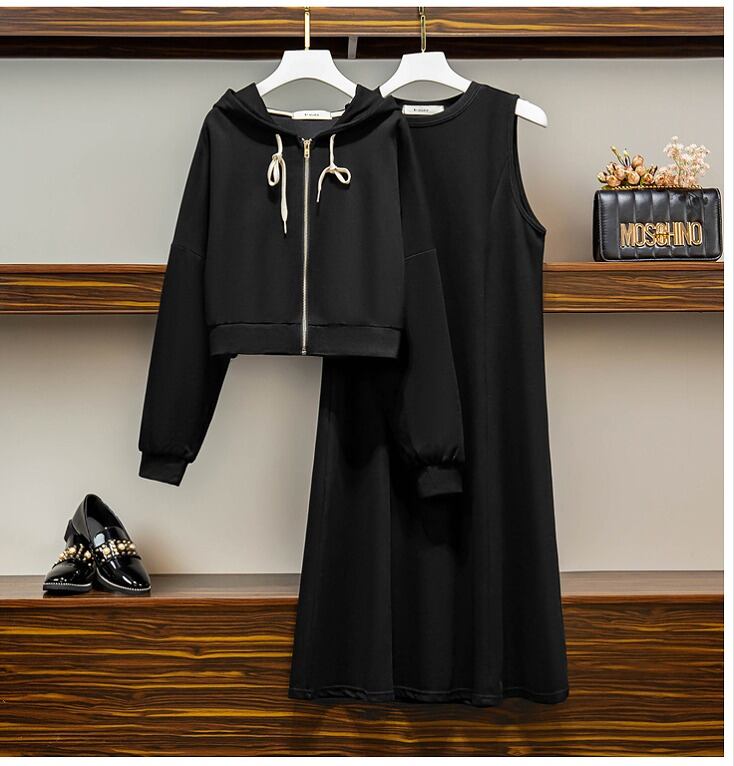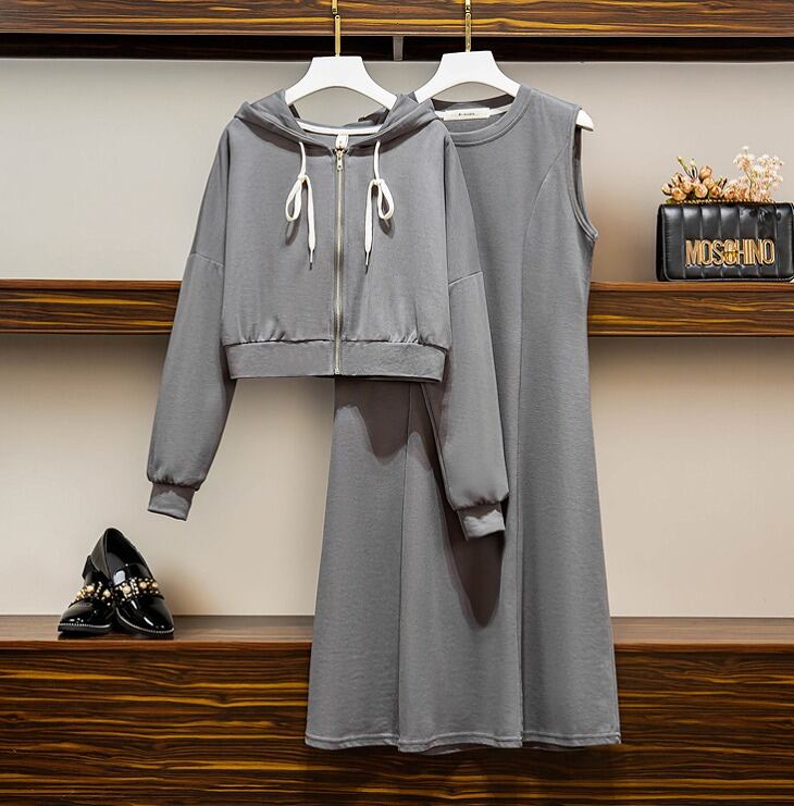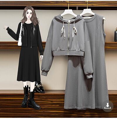 【大きいサイズL-4XL】【秋冬新作】ファッション/人気/2枚セットワンピース?ブラック/グレー2色展開◆secmtf-186017