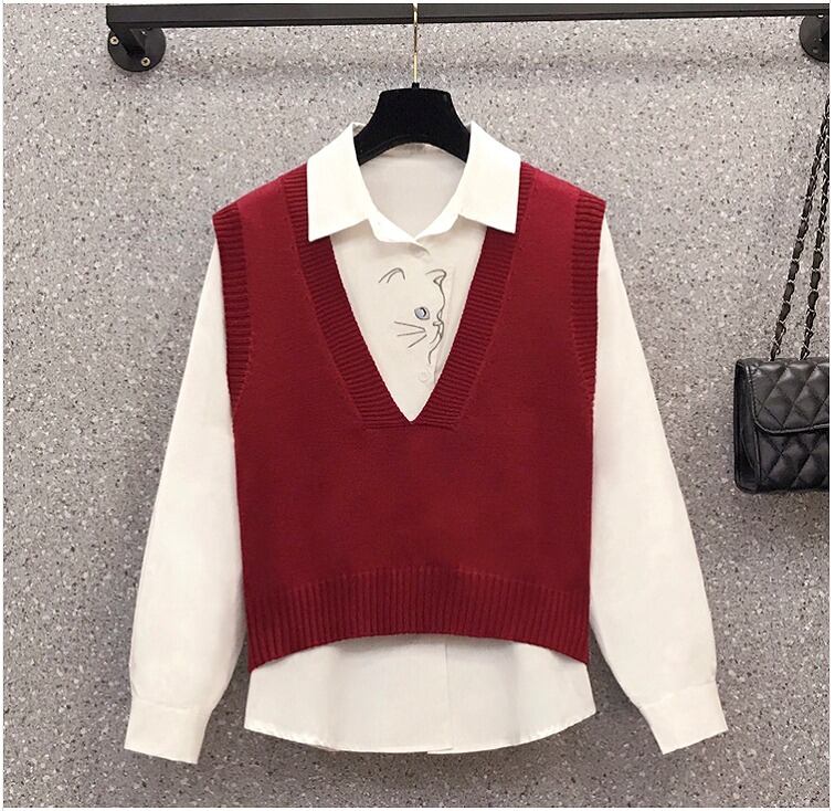 【大きいサイズL-4XL】ファッション/人気/2枚セットトップス?アカ/ブラック2色展開◆sedmvm-165857