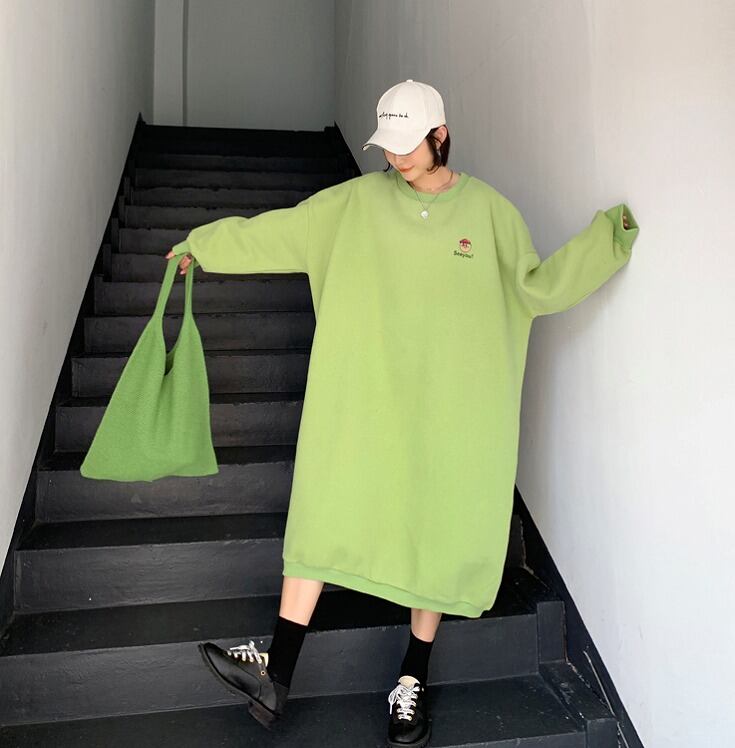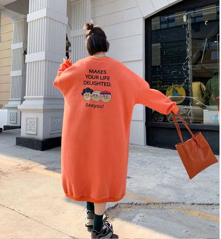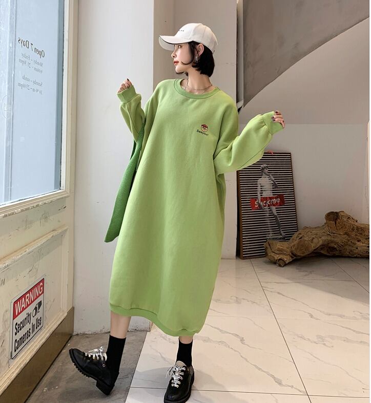【大きいサイズL-XXL】裏起毛ファッション/人気ワンピース♪グリーン/オレンジ2色展開◆sbiot-137237
