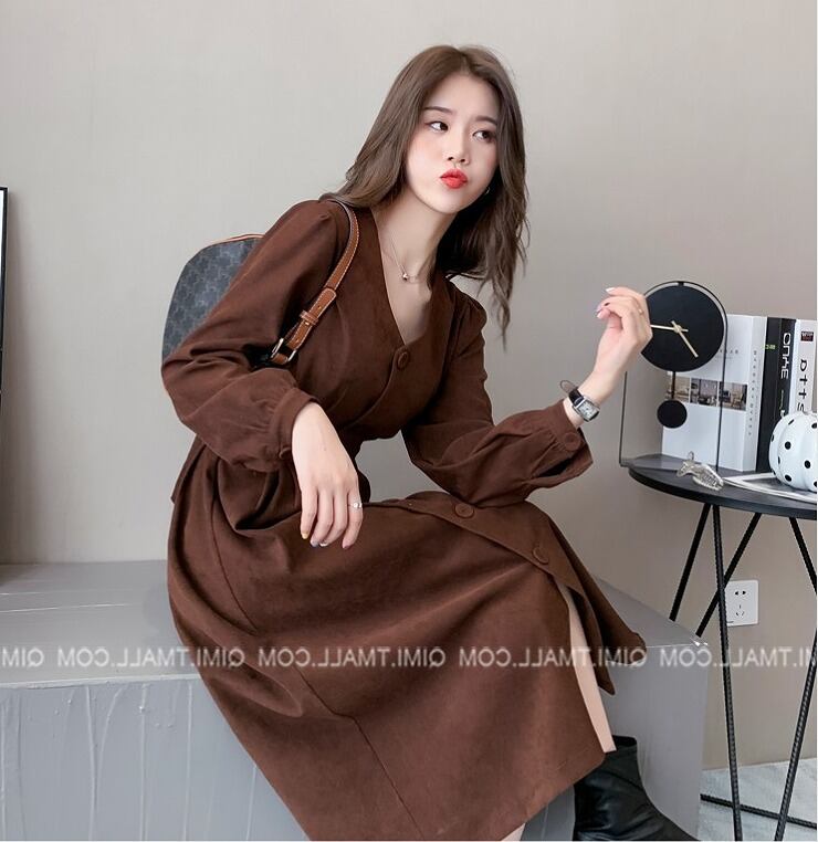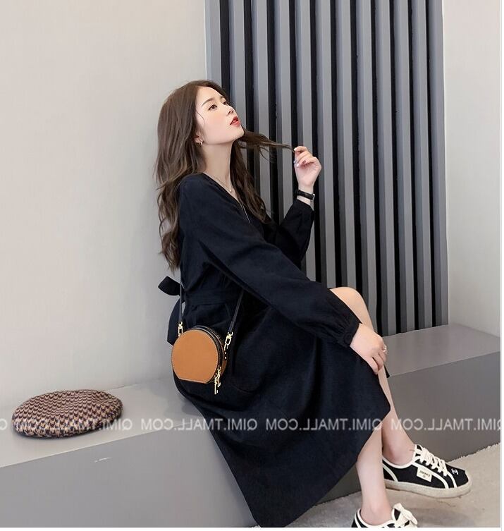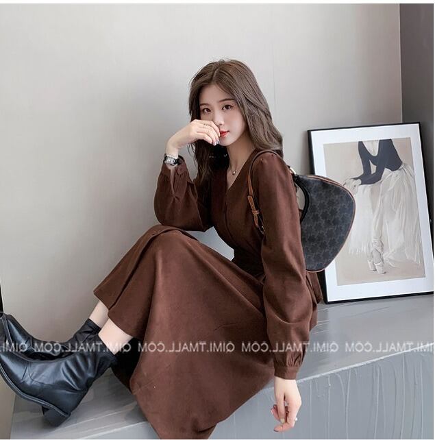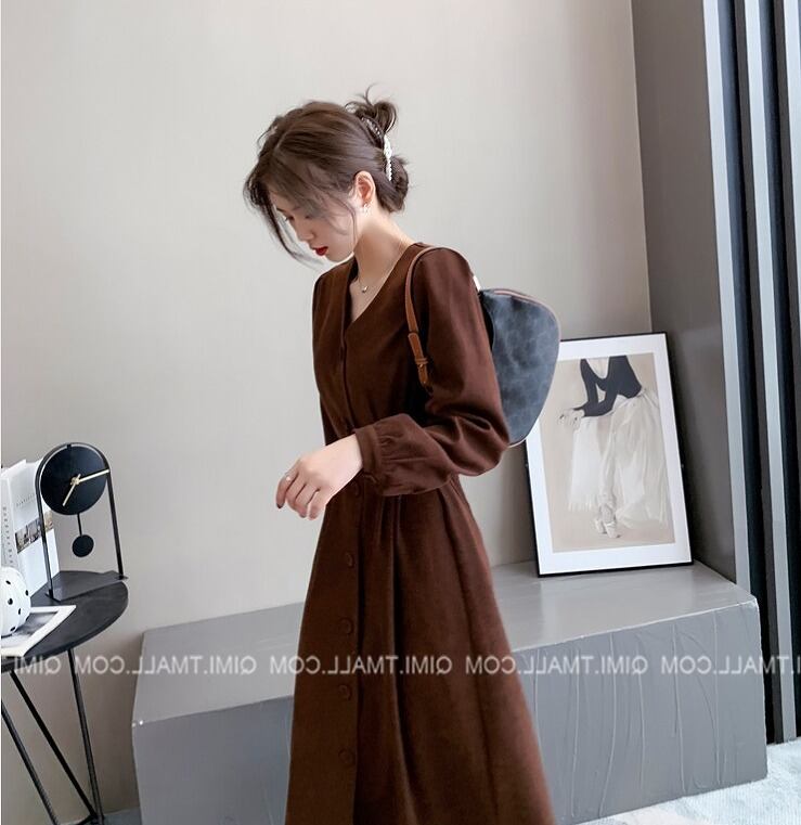 【大きいサイズM-4XL】ファッションワンピース♪ブラウン/ブラック2色展開◆scfmhn-130567